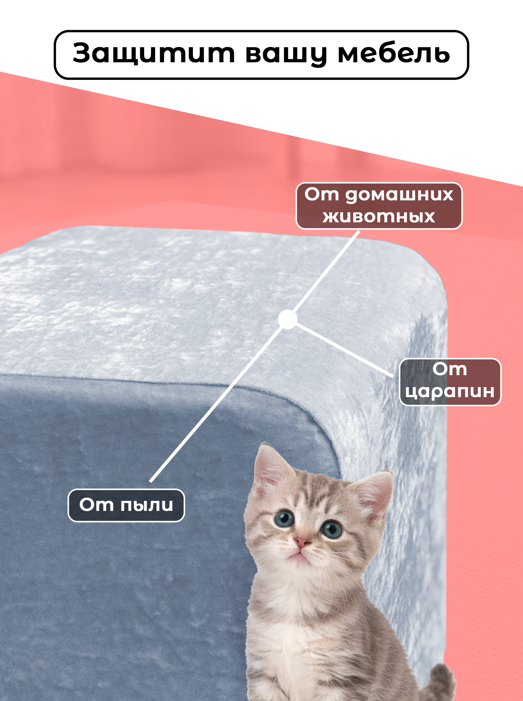 Чехол легко очищается от шерсти, пыли, грязи и пятен. Его можно стирать в стиральной машине при температуре 30 градусов. Изделие прослужит вам долгие годы.