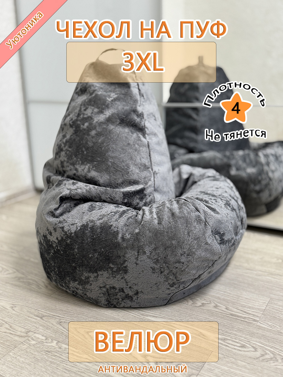Чехол изготовлен из мебельного велюра высокой плотности и износостойкости, который не оставит Вас равнодушным! Он приятен на ощупь, легко стирается, противостоит когтям домашних животных! Изделие имеет ручку для переноса кресла. Детали имеют усиленные швы. Размерный ряд:
