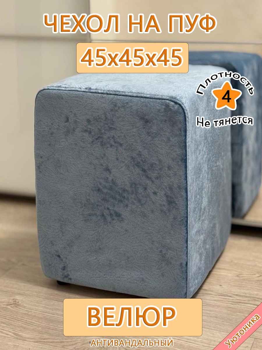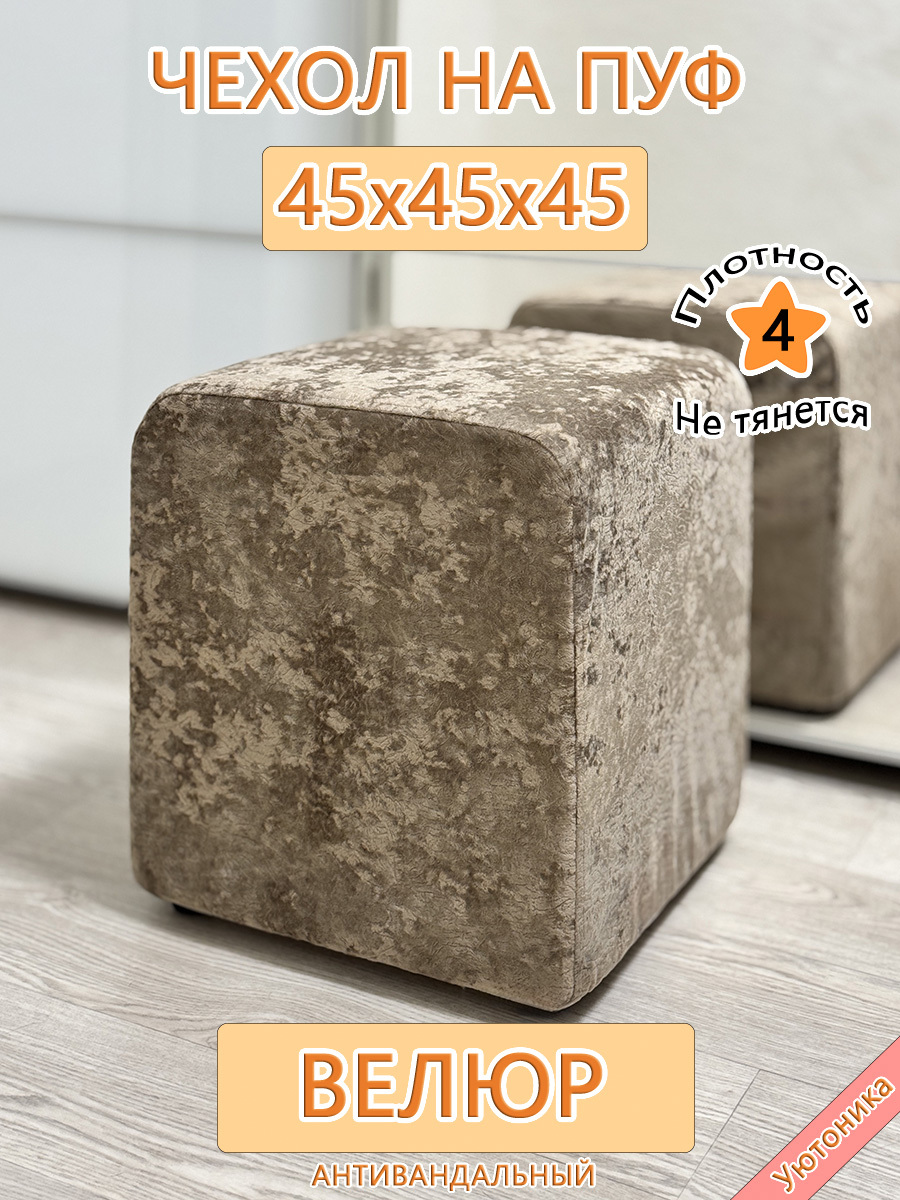 Чехол на пуфик квадратный 43 на 43 см высотой 45 см. Чехол на пуфик изготовлен из антивандального велюра. Материал не тянется. Чехол может подойти на пуфик квадратный 42 на 42 см и 44 на 44 см, при этом высота его изменится соответственно. Снизу фиксируется крепким шнурком - более надёжным аналогом резинки. Эта накидка на пуф защитит Ваш пуфик от загрязнений, царапин, когтей домашних животных и потёртостей. Чехол на пуфик вернёт жизнь Вашему старому пуфу, добавит изюминку интерьеру и поднимет Вам настроение. Чехол легко очищается от шерсти домашних животных, пыли, грязи и пятен. Чехол из велюра стирается в стиральной машине при температуре 30-40 градусов. Изделие будет служить Вам долгие годы!