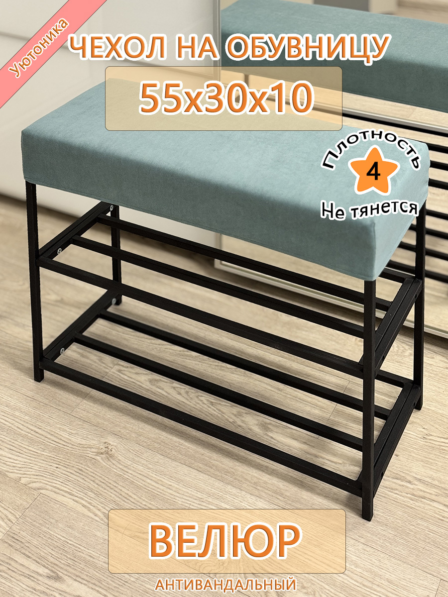 Чехол на обувницу прямоугольный 55 на 30 см высотой 10 см. Изготовлен из антивандального велюра. Эта накидка для прихожей защитит Ваш пуфик от загрязнений, царапин, когтей домашних животных и потёртостей. Чехол на банкетку вернёт жизнь Вашему старому изделию, добавит изюминку интерьеру и поднимет Вам настроение. Чехол легко очищается от шерсти домашних животных, пыли, грязи и пятен. Чехол из велюра стирается в при температуре 30 градусов. Изделие будет служить Вам долгие годы! Чехол не тянется, выбирайте размер в размер.