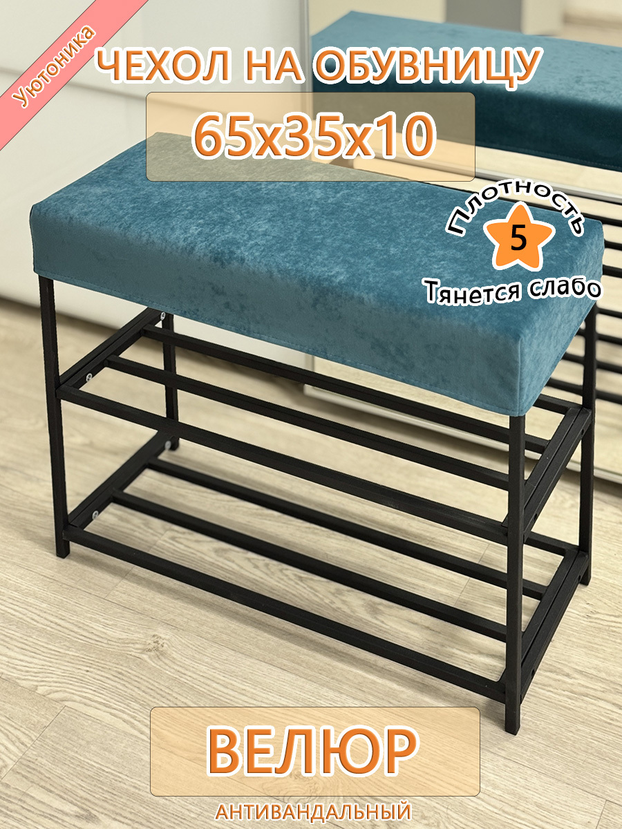 Чехол на обувницу прямоугольный 65 на 35 см высотой 10 см. Изготовлен из антивандального велюра. Эта накидка для прихожей защитит Ваш пуфик от загрязнений, царапин, когтей домашних животных и потёртостей. Чехол на банкетку вернёт жизнь Вашему старому изделию, добавит изюминку интерьеру и поднимет Вам настроение. Чехол легко очищается от шерсти домашних животных, пыли, грязи и пятен. Чехол из велюра стирается в при температуре 30 градусов. Изделие будет служить Вам долгие годы! Чехол не тянется, выбирайте размер в размер.