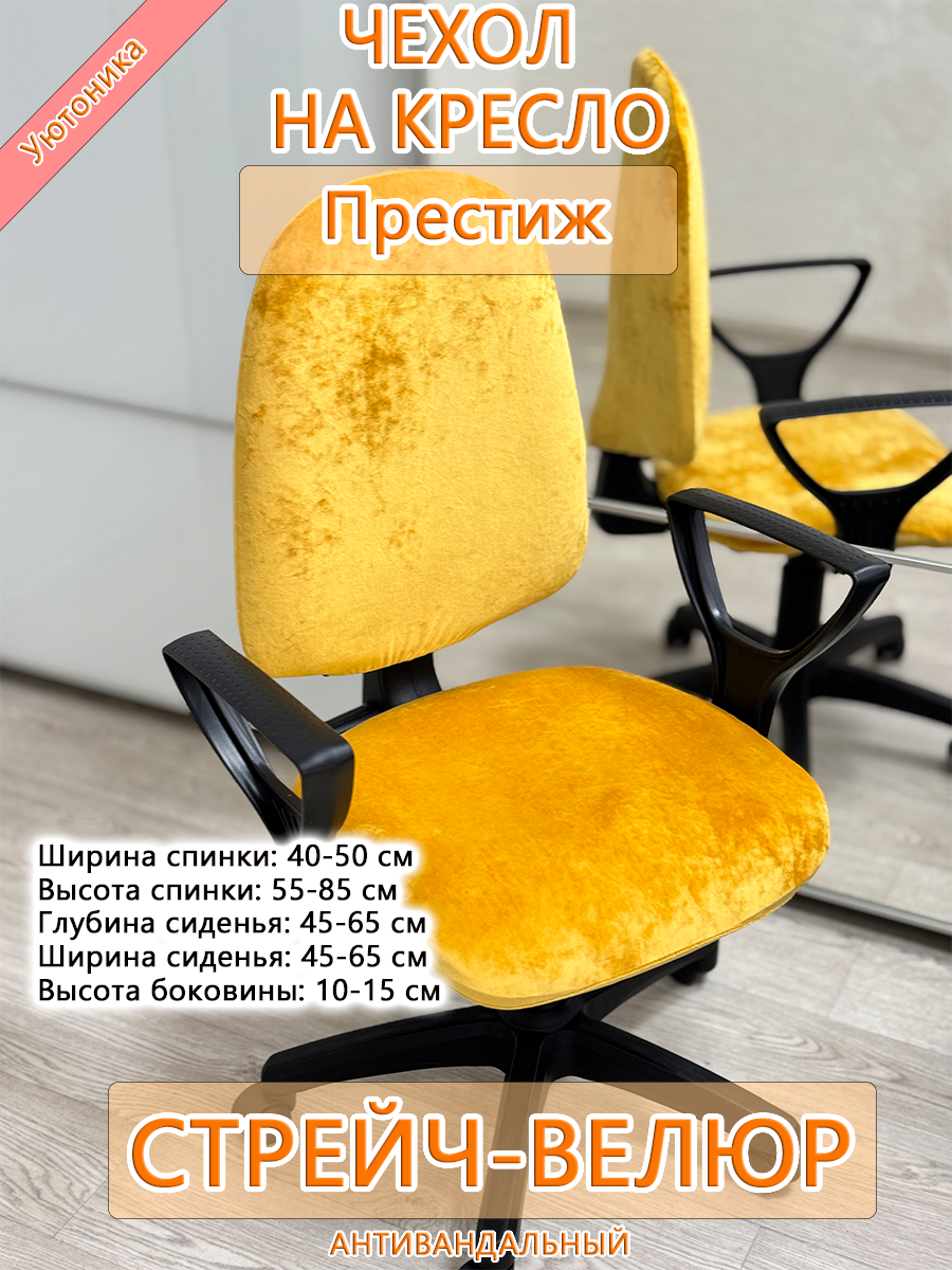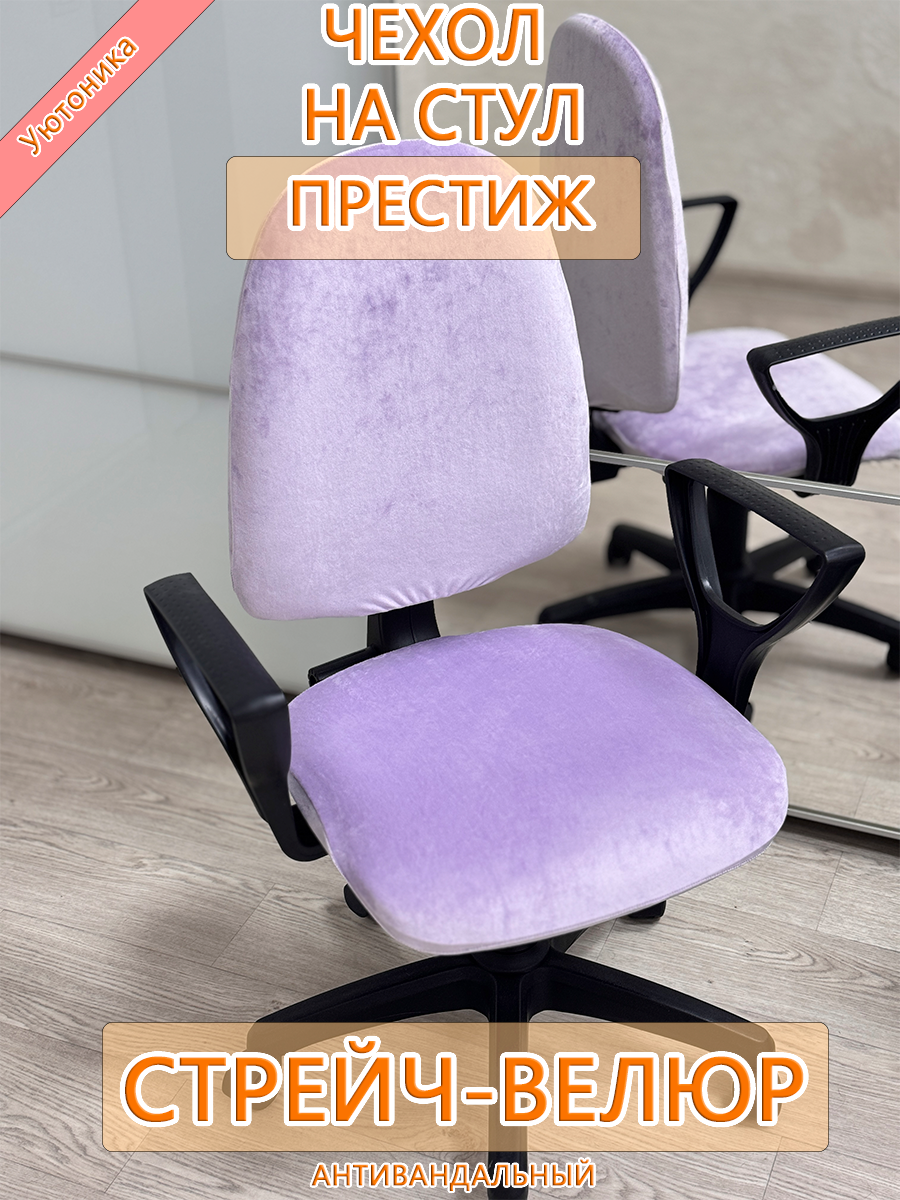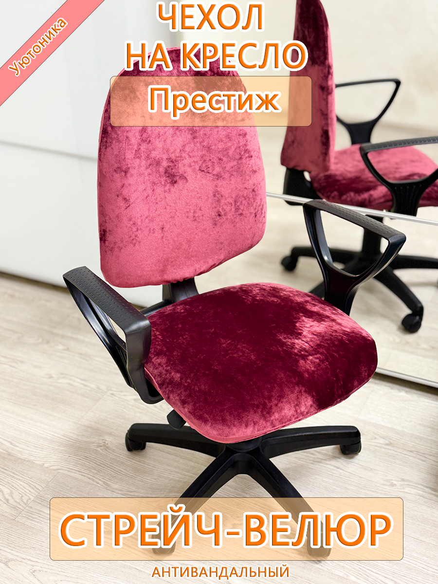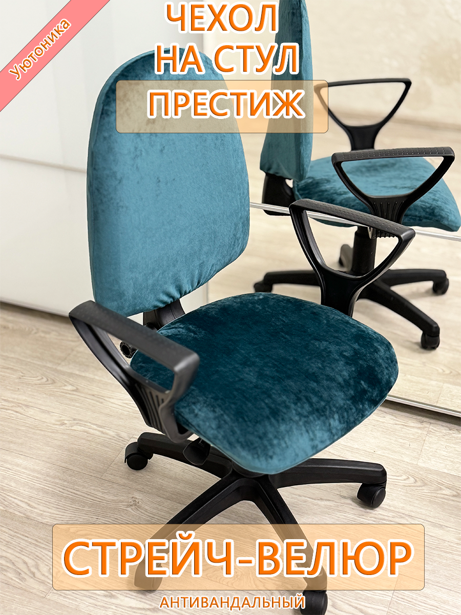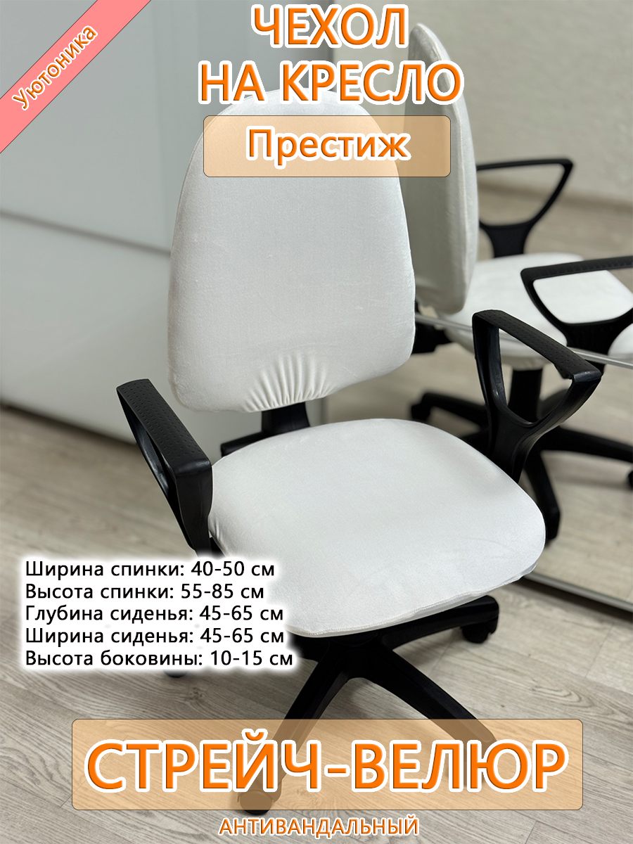 Комплект чехлов (4 шт) для офисного компьютерного кресла Элегия изготовлен из тянущегося велюра. Не требует особых навыков для надевания. Спинка и сиденье снизу фиксируются крепкой резинкой. Может подойти и на другие модели офисных кресел при совпадении заявленных размерных параметров.