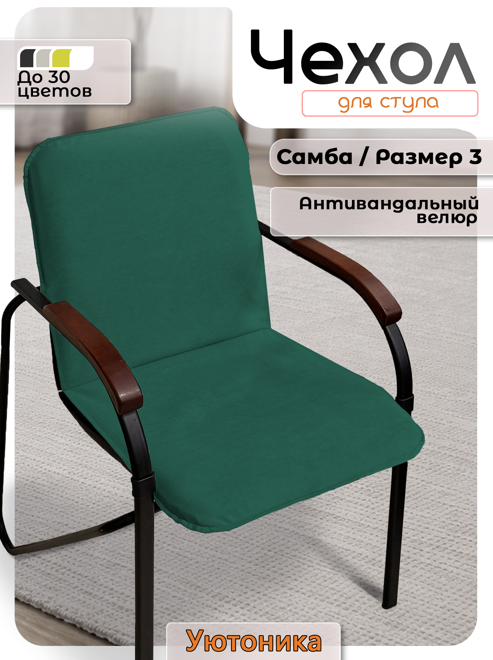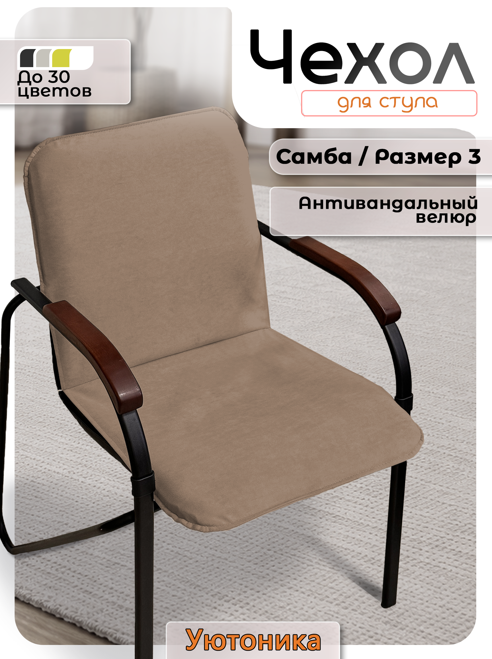 Чехол для стула Самба, который не съезжает. Может быть изготовлен из антивандального велюра. Ширина 45 см, высота спинки 46 см, глубина сиденья 44 см. Указанные размеры от шва до шва.