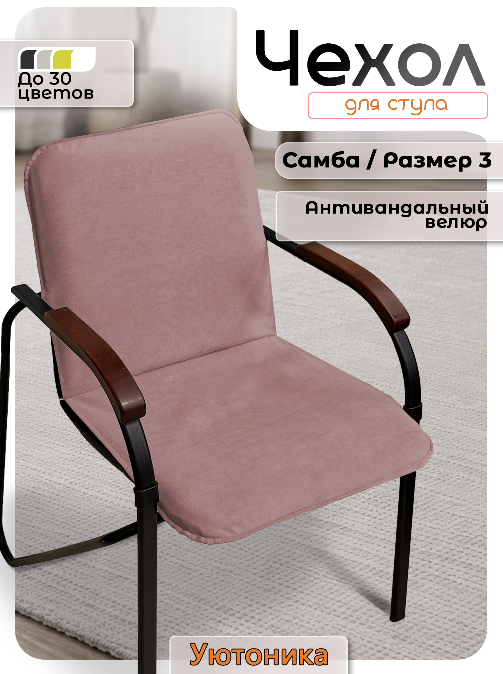 Комплект чехлов для стула Самба, который не съезжает. Может быть изготовлен из антивандального велюра. Ширина 48 см, высота спинки 46 см, глубина сиденья 44 см. Указанные размеры от шва до шва.