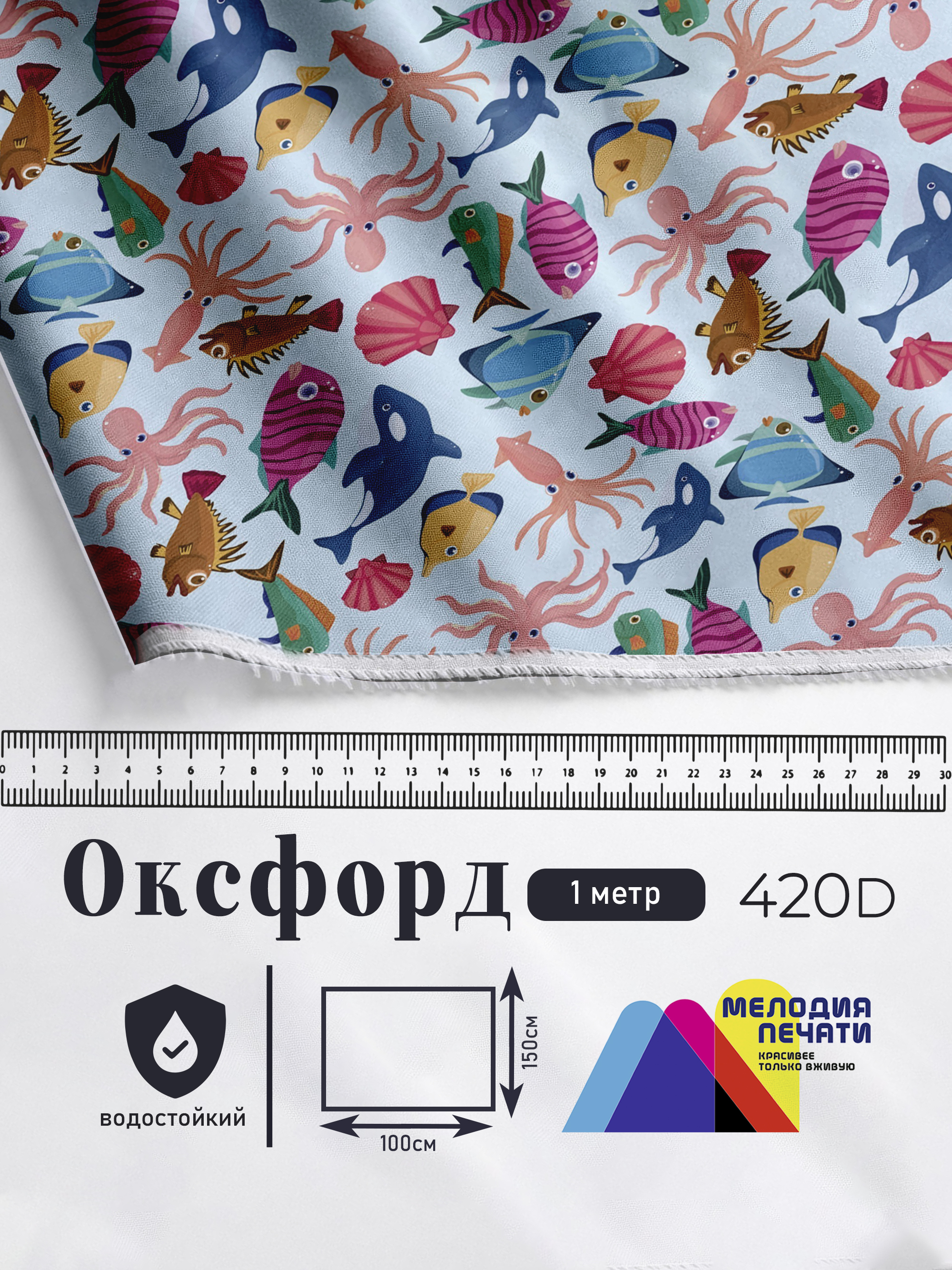 Oxford водонепроницаемый со световлагостойким рисунком. Ткань подойдет для изготовления садовой и тентовой мебели, зонтов, шезлонгов, кресел, сумок, чехлов и прочей продукции. Ширина материала 150 см, длина отреза 100 см. Нашу ткань с узором можно марать, мять, стирать и гладить. Ей не страшны УФ-лучи и перепады температур. Перед использованием рекомендуем произвести стирку, которая устранит остаточный запах краски.