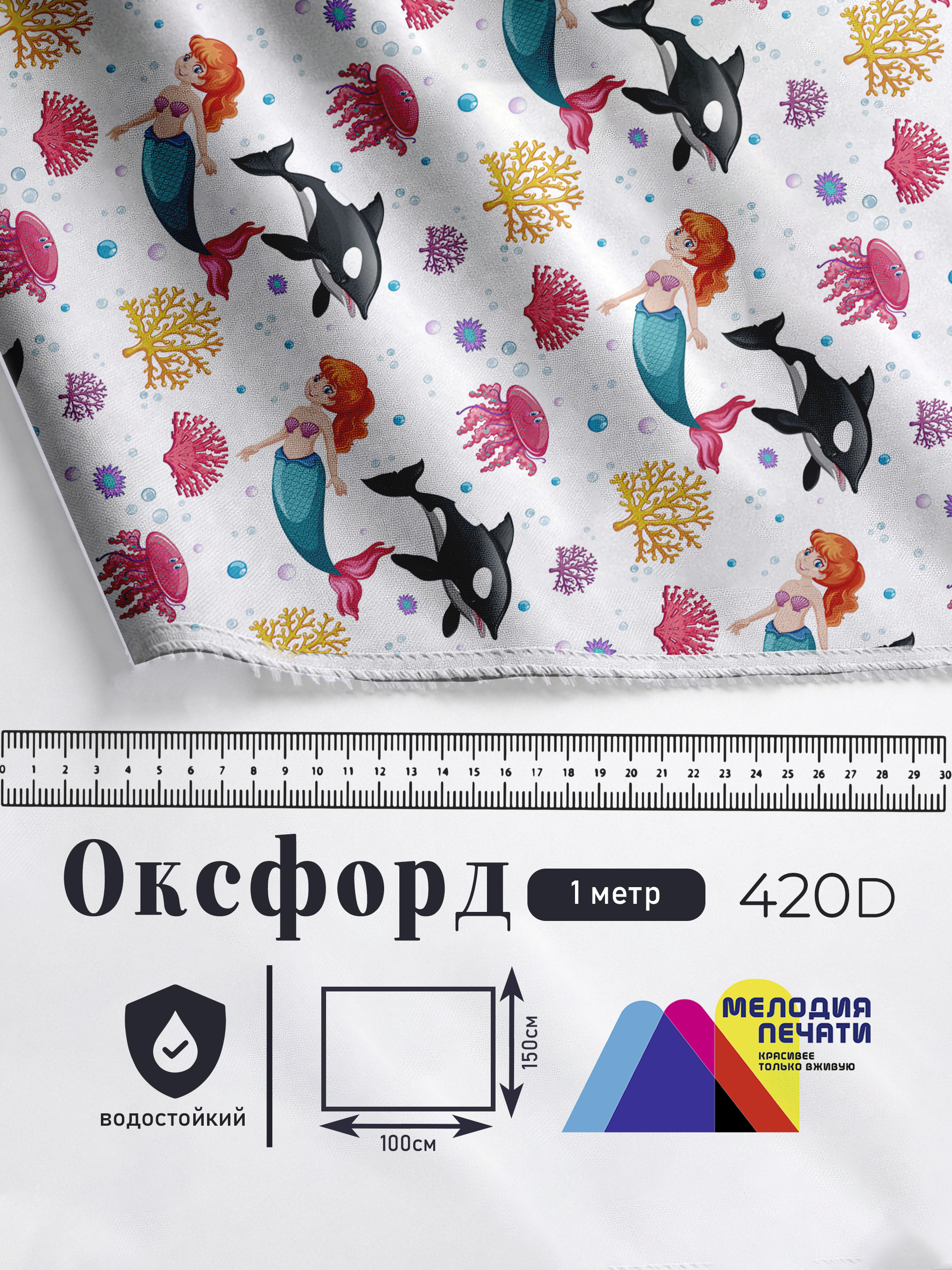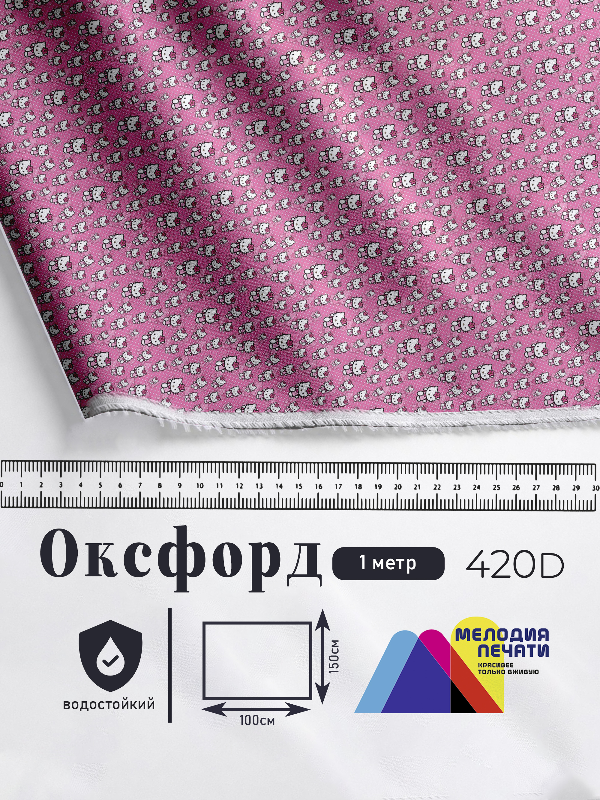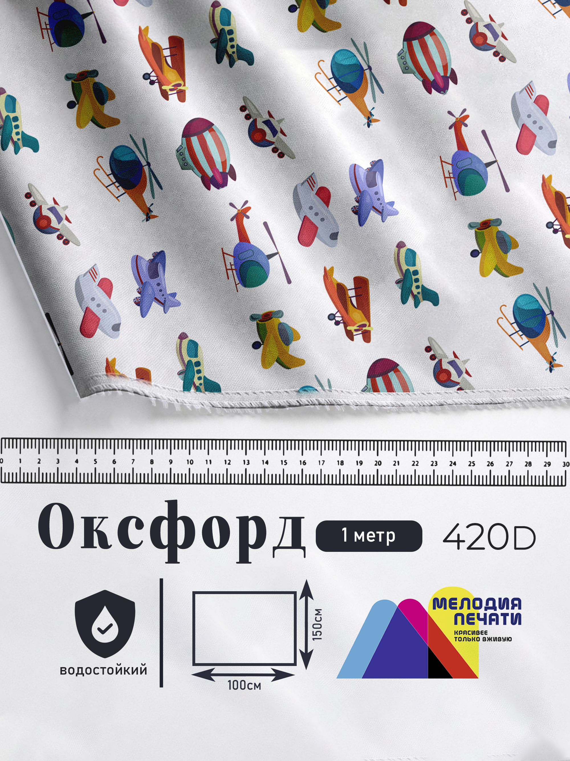 Оксфорд с принтом 1 метр №3 420 D